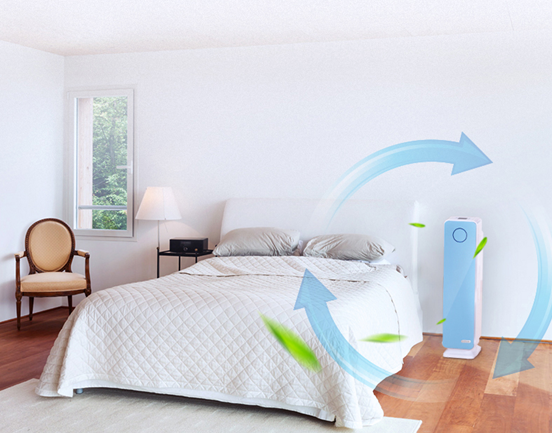 AH-9005空气净化器CADR值≥170m3/h,满足17-30平米房间使用,可满足客厅、卧室、书房、儿童房等房间使用,另其修身塔式身机可轻松摆放在家里任意位置。净化方面,它拥有多重净化。第一重初效过滤网过滤卧室里的头发,宠物的毛发、空气中的浮尘,大颗粒物等;第二重采用欧美H13级TURE HEPA滤网,PM0.3以上的颗粒物去除效率可以达到99.97%。,过滤更加深层次;第三重除臭块(活性炭)去除房间里因装修留下的甲醛、材料异味和空气中有害物质等。第四重UV-C杀菌灯配合二氧化钛光触媒有效杀灭空气中的病毒和细菌;第五重等离子发生器,辅助灭菌除尘。